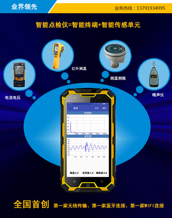 3.  外配無線傳感器可完成振動加速度、速度、位移、包絡值以及FFT譜測量;